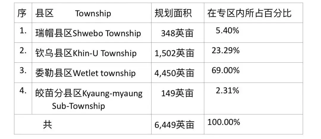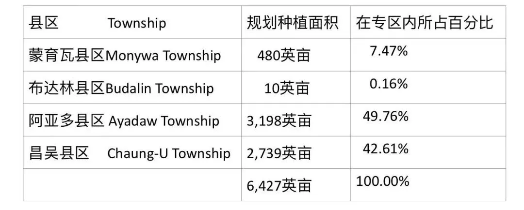 在现2025—26财政年度夏作物种植季节期间,蒙育瓦专区规划种植夏芝麻6,427英亩,各县区规划的种植面积如下表: