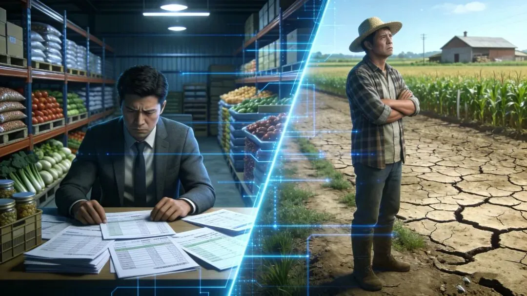 一边是农户望着粮价波动、地租上涨、极端天气忧心忡忡。