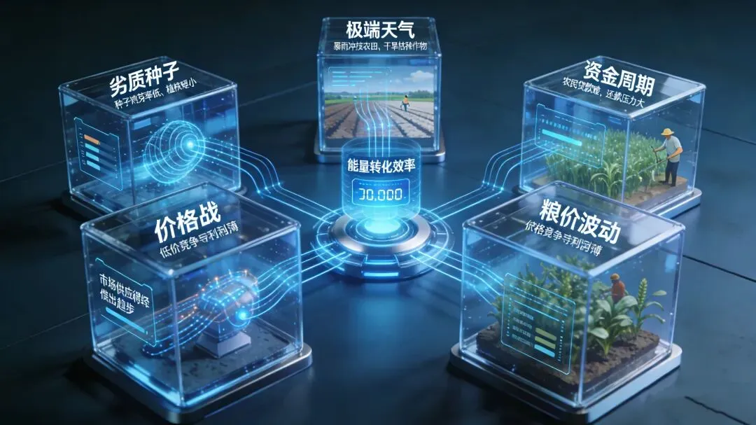 农户的8个痛点,本质上是能量转化过程的三重风险: