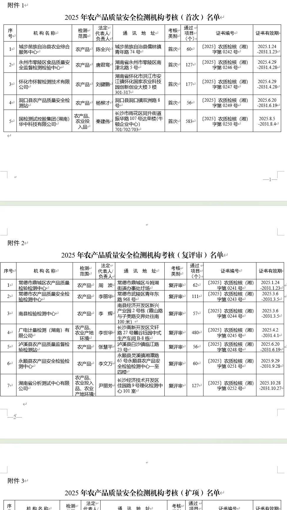 3.2025年农产品质量安全检测机构考核(扩项)名单