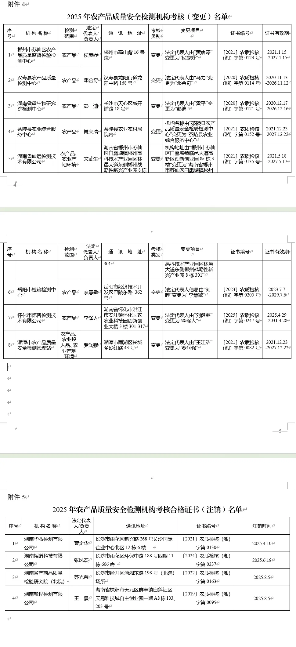 4.2025年农产品质量安全检测机构考核(变更)名单
