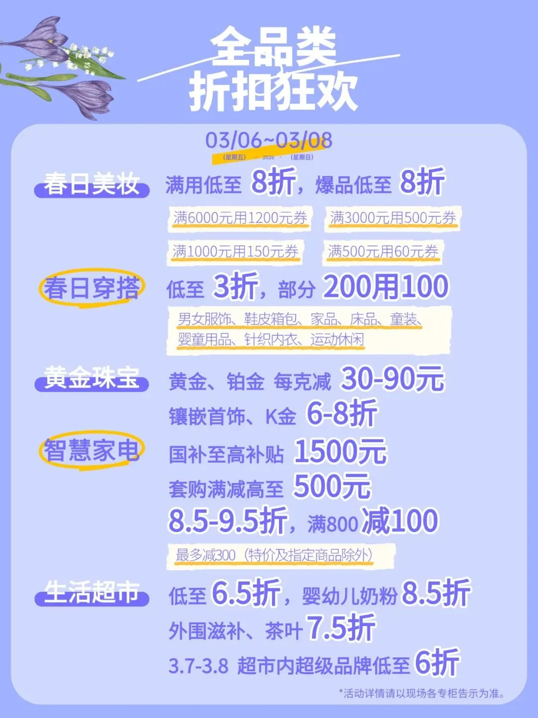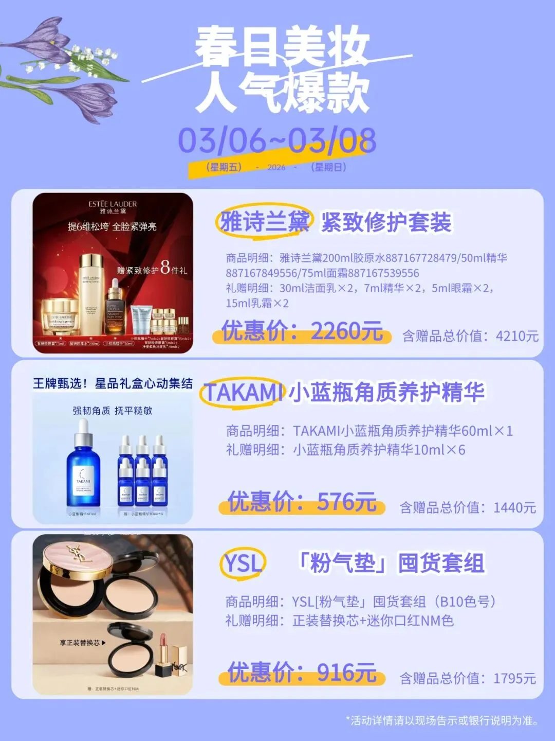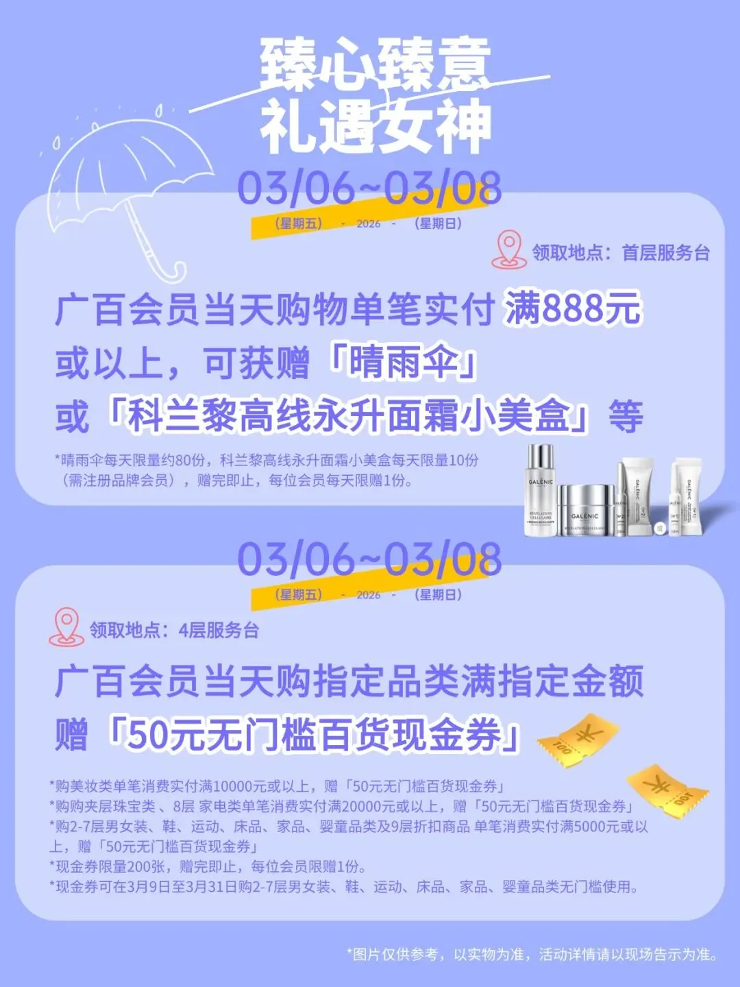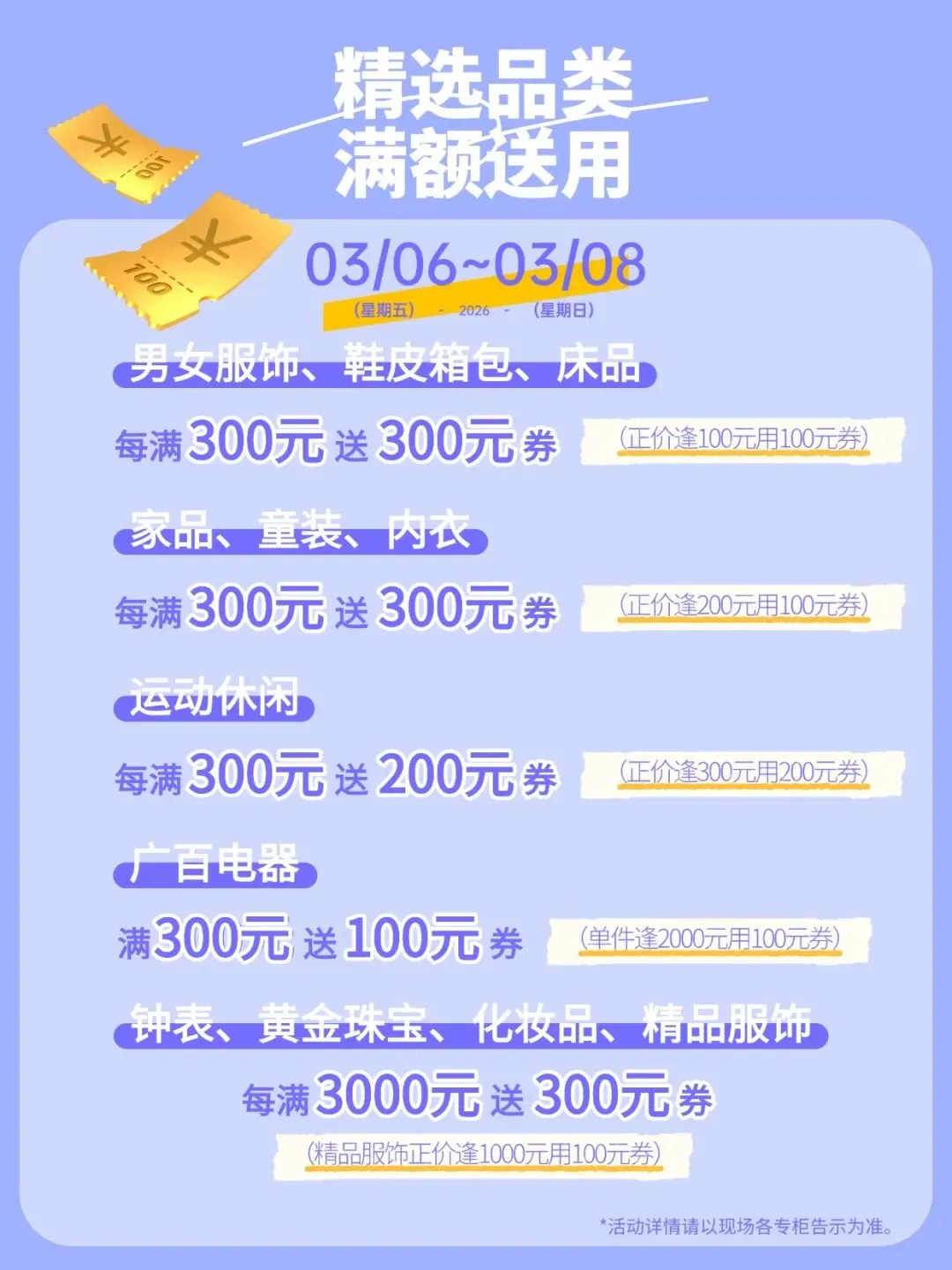 商品价格以现场专柜告示为准,库存数量有限,先到先得。
