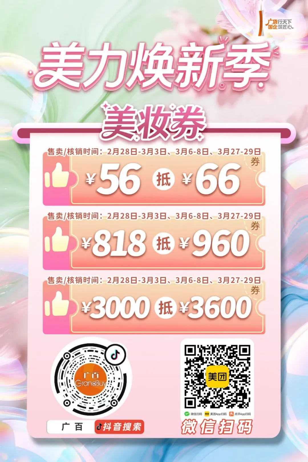 >低至3折焕新!再叠农行200减100!满额享六大变美服务,更有男模同框免费出片!