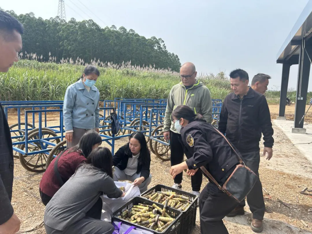 在蔗种繁育基地,技术人员现场指导基地规范蔗种包装标签、切种消毒、储藏运输、产地检疫等环节管理,引导蔗种繁育主体标准化生产,以优质良种为江州区糖业高质量发展提供坚实的种业支撑。