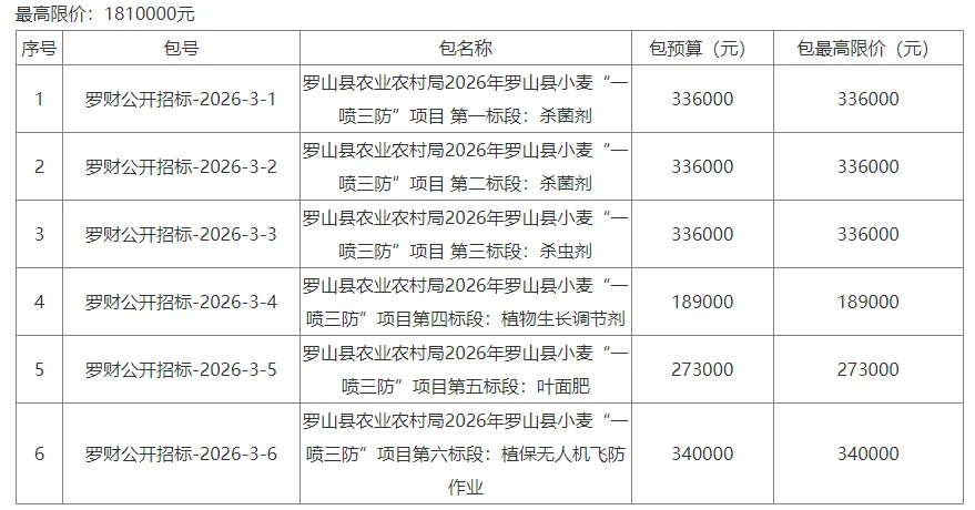 2、项目名称:罗山县农业农村局2026年罗山县小麦“一喷三防”项目