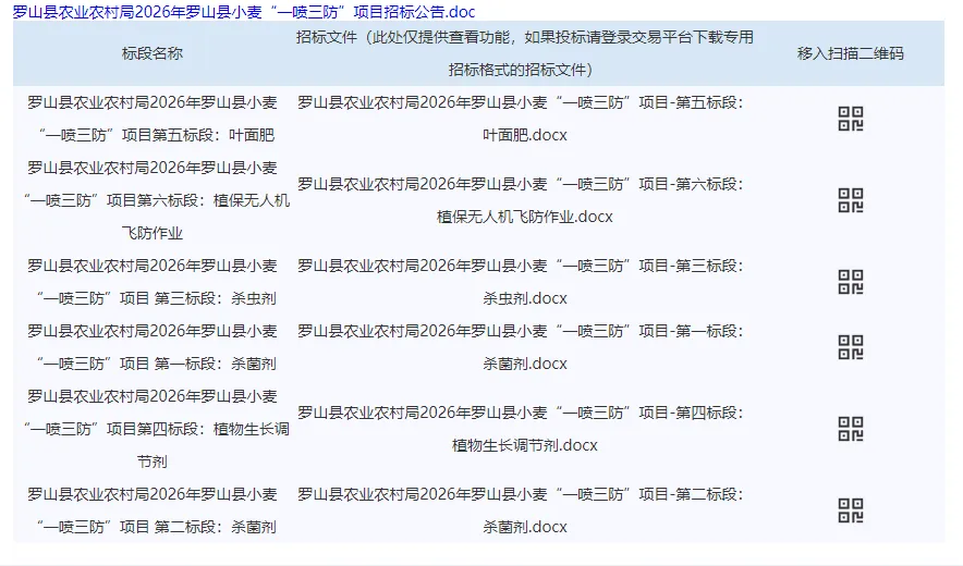 罗山县农业农村局2026年罗山县小麦“一喷三防”项目招标项目的潜在投标人应在登录“全国公共资源交易平台(河南省.罗山县))(https://ggzyjy.xinyang.gov.cn/luoshan/)”网站,凭办理的企业身份认证锁(CA数字证书)登录会员系统进行网上投标;获取招标文件,并于2026年03月31日09时30分(北京时间)前递交投标文件。