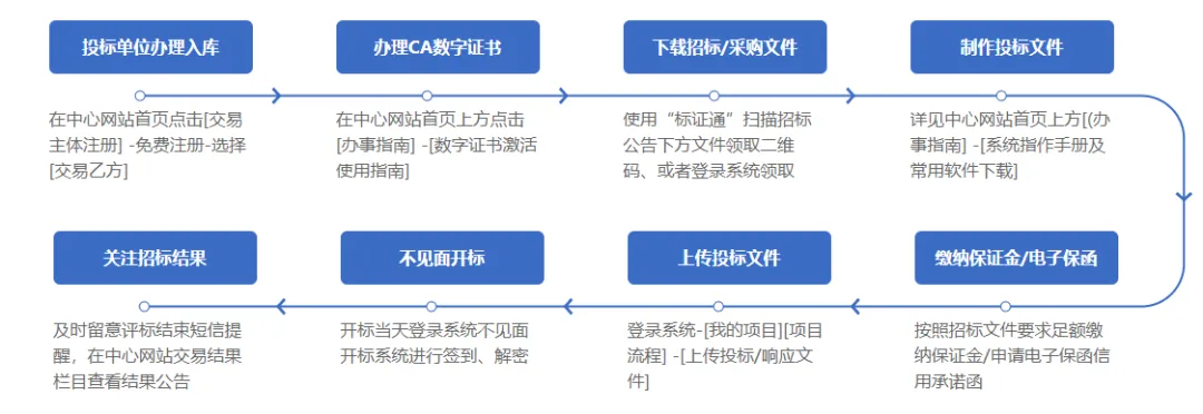 完成企业诚信库注册后,必须办理CA数字证书方可在网上办理招投标相关业务。投标人根据信阳市公共资源交易网通知公告栏目中《关于信阳市公共资源交易平台数字证书(CA)互认系统正式上线运行的通知》要求,自行选择CA数字证书服务商,线上、线下办理CA数字证书。