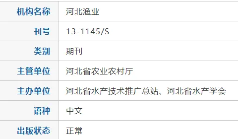 主办单位:河北省水产技术推广总站、河北省水产学会