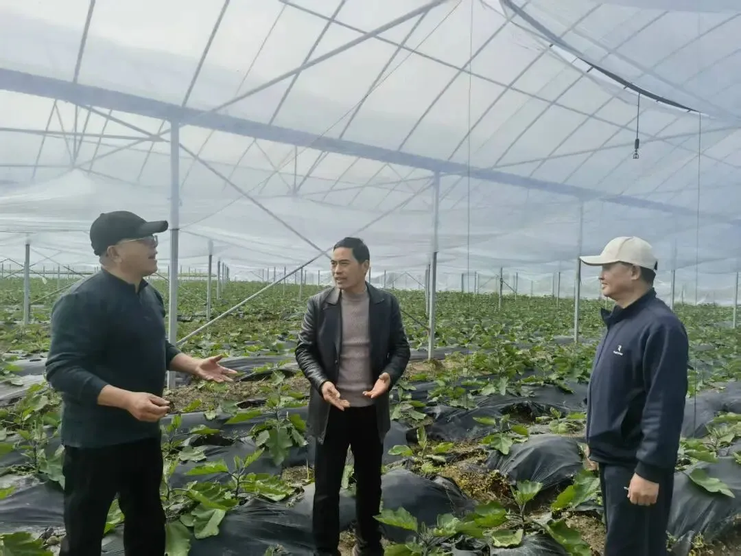 在福鼎市乡村振兴促进会与福建农业职业技术学院共同联系的科技工作站一一福建省鼎鲜蔬菜科技有限公司,调研指导组了解到,该公司盘活店下镇海田村集体和村民闲置的40亩7个蔬菜大棚,种植长丰八号烧烤茄子30亩,法国皇后西芹10亩,目前长势良好。下阶段计划再扩大15亩3个蔬菜大棚,开展肉丝瓜等品种种植。调研指导组与企业负责人林美香,围绕蔬菜生产可降解地膜覆盖除草、大棚蔬菜和30亩福鼎槟榔芋田间水肥管理、病虫害防治等技术细节进行了深入交流,并与福建农业职业技术学院专家现场连线指导。