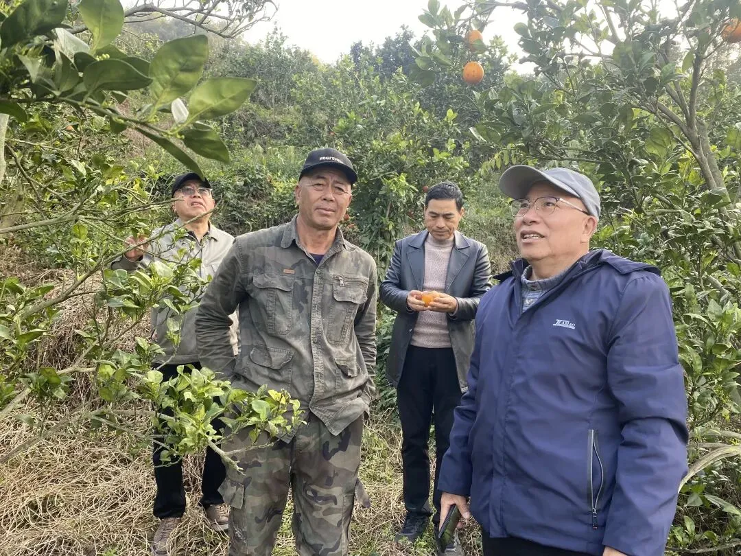 在福鼎市乡村振兴促进会产业联系点一一福鼎市店下津柚福家庭农场,调研指导组了解到,该农场利用山地先后开发种植沃柑、台湾甜葡萄柚、红美人、纽荷尔脐橙、红肉蜜柚、甜橘柚、坪山柚、沙糖桔、苦柑等10余个品种385亩,水果主要销往龙安工业区和温州、宁德等地。由于水果主要采取现采现卖,未使用保鲜剂,深受温州等地客户青睐,也迎来了不少慕名前来现场采摘的客户,至今树上仍挂着不少入冬后未采摘的脐橙。调研指导组与农场负责人雷宜福,沿着山坡近距离实地观察了果树的生长情况,经过深入沟通,建议农场认真总结近几年的成功经验和不足,利用原有果树树桩科学嫁接适销对路、市场前景看好的苦柑(瓯柑)等品种,并适度扩大规模,减少种植效益差的品种;积极对接省级家庭农场优质场、科技示范基地等项目扶持政策,争取资金改善果场灌溉、运输、机械化、仓储等条件;联动店下镇山海旅游资源,组建店下柑橘柚产业化联合体,通过“采摘+认养+团建+研学”等渠道拓展销路。