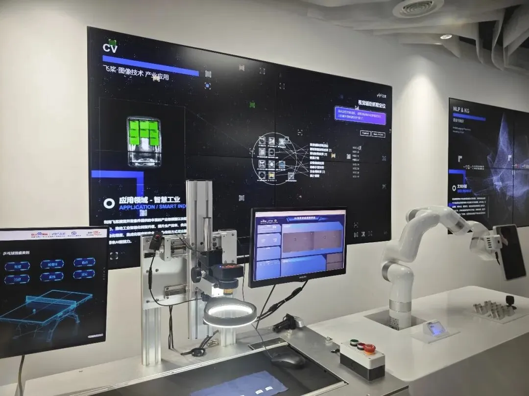 在工作人员陪同下,校方领导一行实地参观了百度飞桨(广州)人工智能赋能中心,详细了解我国首个自主研发的开源开放产业级深度学习平台,包括技术突破与产业应用成果等。
