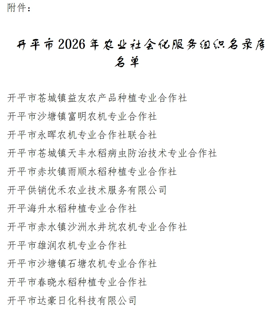 附件:开平市2026年农业社会化服务组织名录库名单