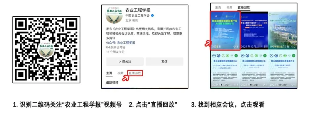 收看更多会议讲座回放欢迎关注“农业工程学报视频号”