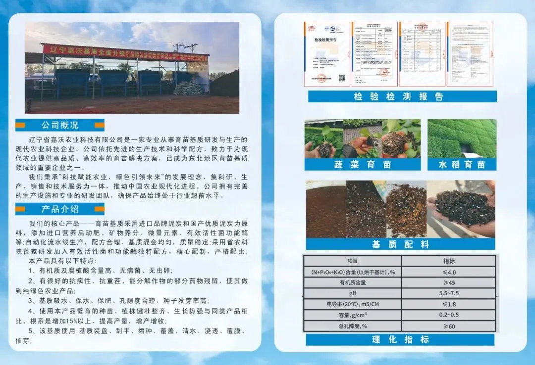 辽宁省嘉沃农业科技有限公司是一家专业从事育苗基质研发与生产的现代农业科技企业。公司依托先进的生产技术和科学配方,致力于为现代农业提供高品质、高效率的育苗解决方案,已成为东北地区育苗基质领域的重要企业之一。