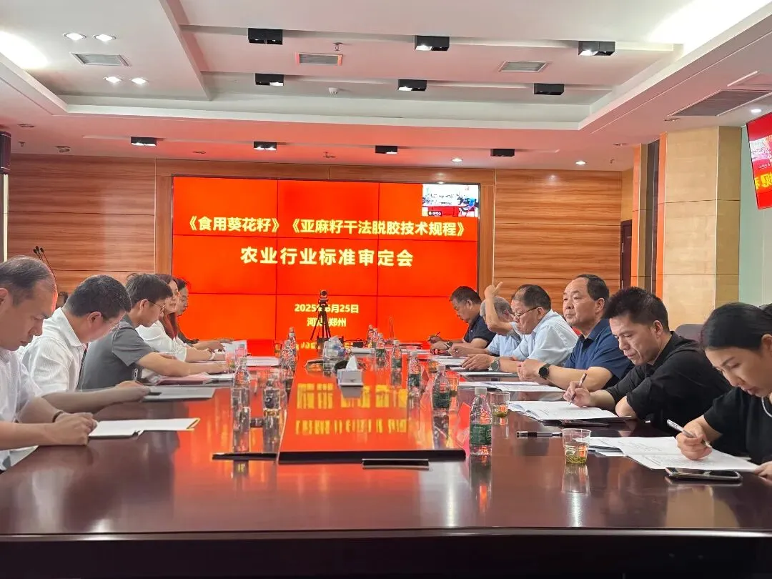 2025年6月24日,由农业农村部农产品加工标准化技术委员会主办,其油料加工分委会与河南省农业科学院农产品加工研究中心承办的《食用葵花籽》《亚麻籽干法脱胶技术规程》农业行业标准审定会在河南郑州顺利召开。本次会议旨在推动农产品加工标准化进程,提升产业整体水平。山东禹王生态食业有限公司作为中国农业产业化的积极践行者,受邀参与了此次重要标准的评审工作。会上,山东禹王生态食业有限公司总经理李顺秀与其他与会专家、领导一道,认真审议了《食用葵花籽》和《亚麻籽干法脱胶技术规程》两项标准草案。禹王生态总经理李顺秀基于成本控制,产业标准发展等角度出发,提出了自己的建议和想法。我们深知,每一项严谨、科学的标准出台,都是推动农业产业进步的一块基石。