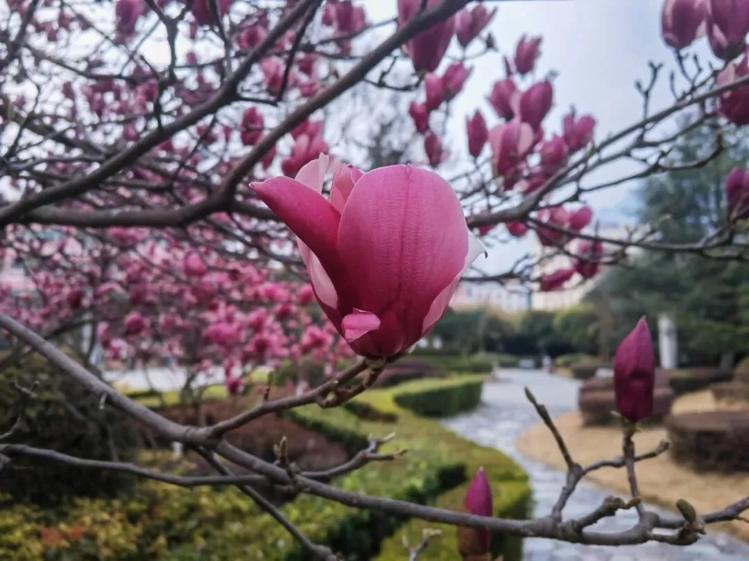 玉兰花开得正舒展,一片一片,或聚拢、或舒张、或翻卷,尽情尽兴、尽态极妍。