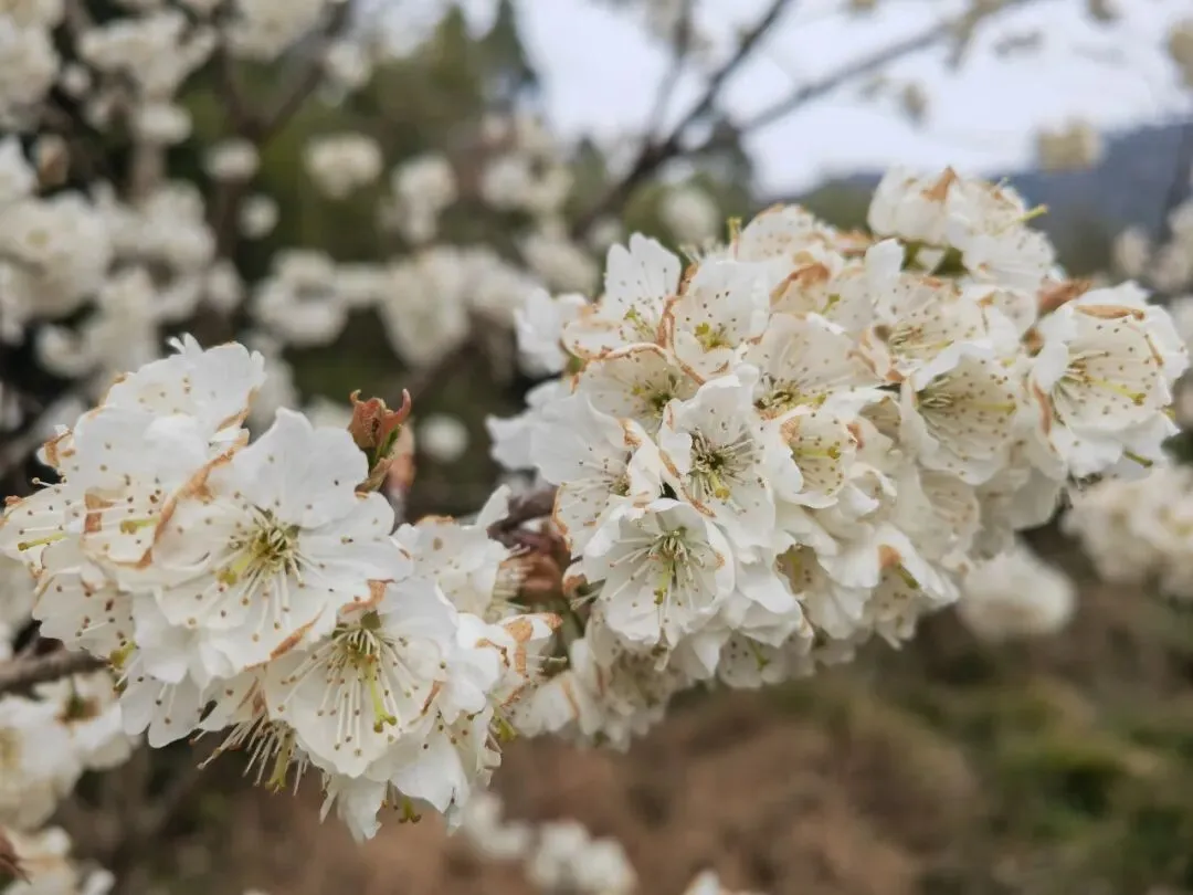 洁白的樱桃花随风舞动,犹如纷落的雪花,又如粉色的轻纱随风浮动。