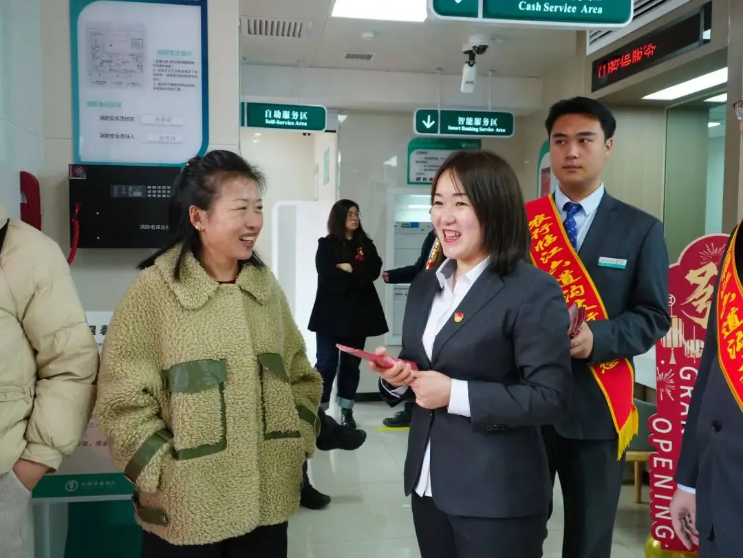 开业当天,现场喜庆热烈,周边村民、农户及个体工商户纷纷前来咨询办理业务。为增添喜庆氛围,支行特别设置开业互动环节,开展抽奖活动。客户在办理开户、签约等业务后,可参与刮刮乐抽奖,奖品涵盖物资、生活用品等,现场欢声不断,切实让群众感受到“家门口银行”的温暖与实惠。