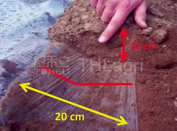 为达到最佳效果,建议地膜各边覆盖宽度为20厘米,深度为10厘米。