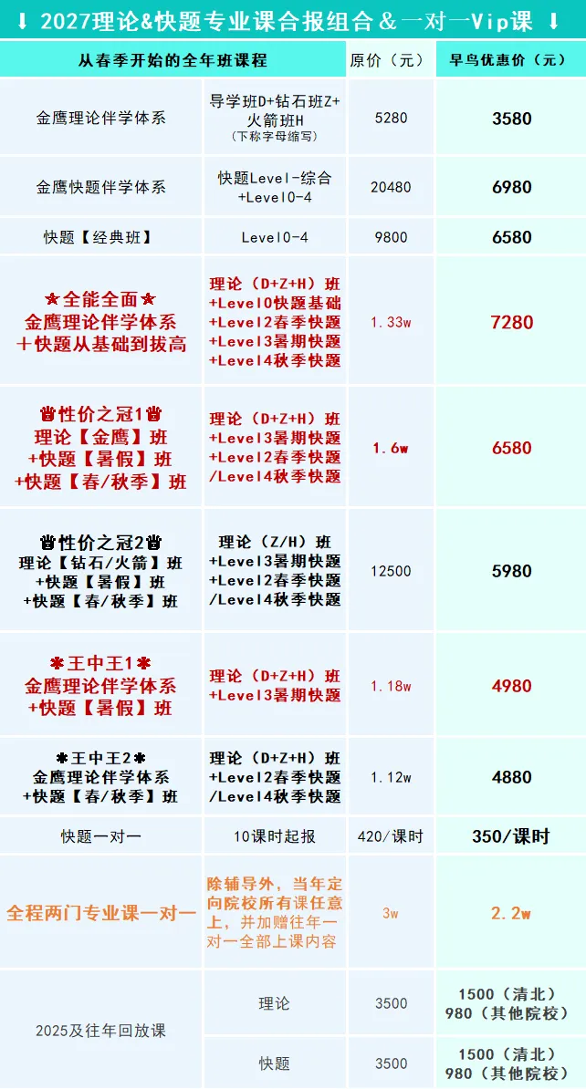 2026年6月1号前报名2027高精尖全年伴学课程。还可享一次免费换学校/专业机会(在锋芒开设的课程里,可互换)例1:报名清华风园课程可换北大风园;例2:报名北大风园课程可换北大国土空间。此外送全套复习资料。