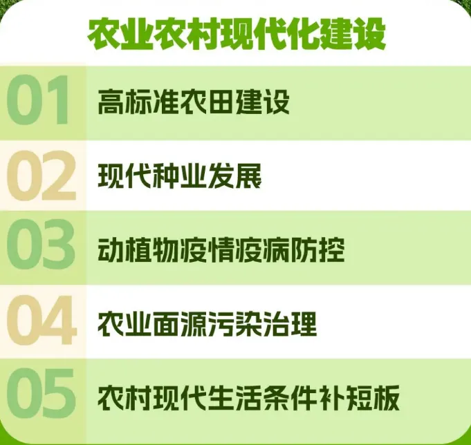 “十五五”规划纲要草案统筹“国家大事”和“关键小事”提出6方面109项重大工程项目。其中农业农村现代化建设共有5项: