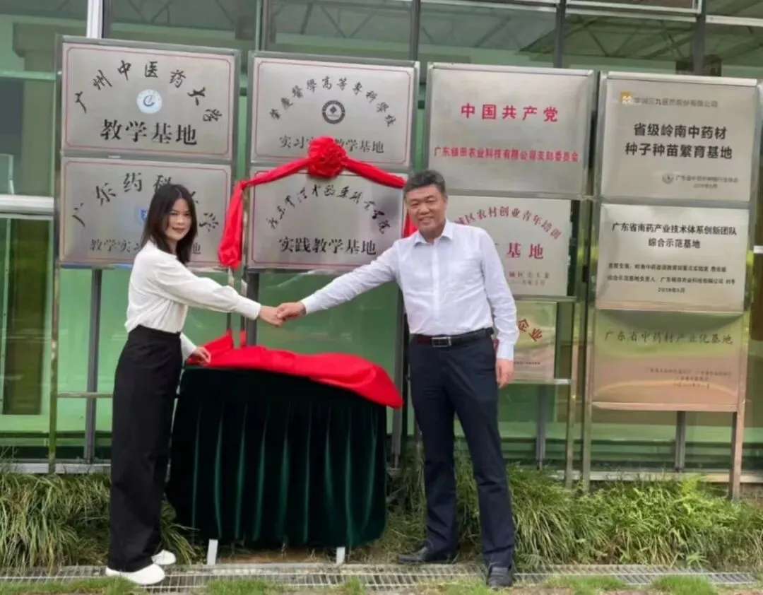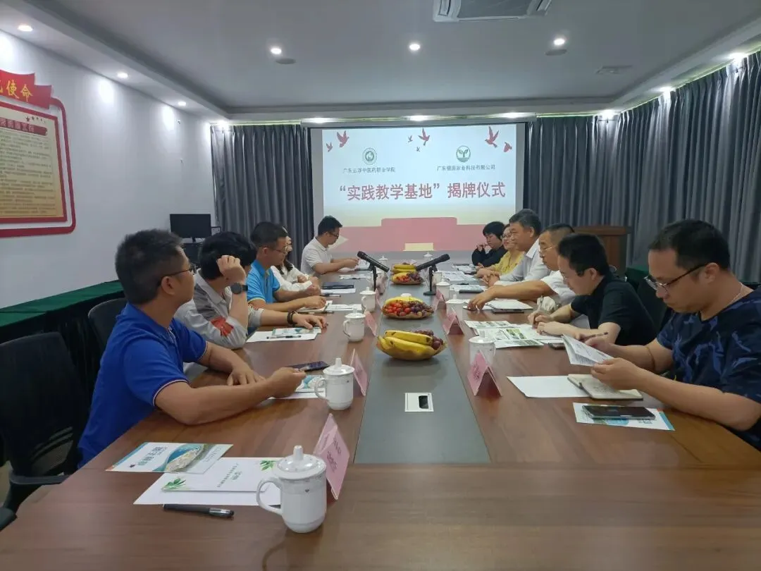 在大家的见证下,王宏、刘子琪为“实践教学基地”揭牌。在随后召开的座谈会上,广东银田农业科技有限公司行政总监江嘉铅对银田公司的基本情况、中药材种植基地情况、种子种苗繁育基地情况、公司经营模式等作了详细介绍。王宏在座谈会上指出,中药材种植是中医药产业高质量发展的源头,云浮地区中药材种植历史悠久,银田农业科技有限公司深耕中药材种植,结合云浮中医药优势资源,发展中药材全产业链,与学院的人才培养定位十分匹配。他表示,广东云浮中医药职业学院的中药学、中草药栽培与加工技术、中药材生产与加工等专业就是针对中药材全产业链的技术技能岗位开设,期待未来在人才培养、科研项目、平台申报等方面可与银田农业科技有限公司有更多、更深的合作。
