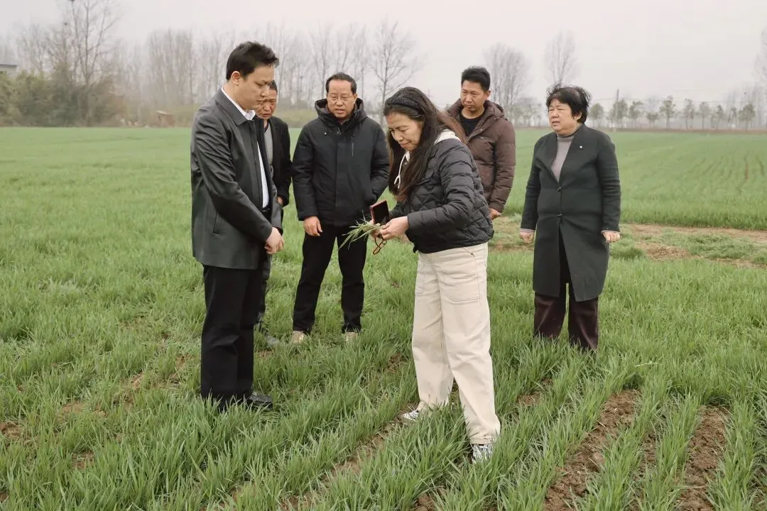 3月6日,河南农业大学詹克慧教授、韩燕来教授、周苏玫教授一行深入正阳县田间一线,调研河南农业大学新品种“豫农612”生长状况,并为当地小麦生产与良种推广提供科技指导。正阳县副县长马兴立及相关部门负责同志陪同调研。