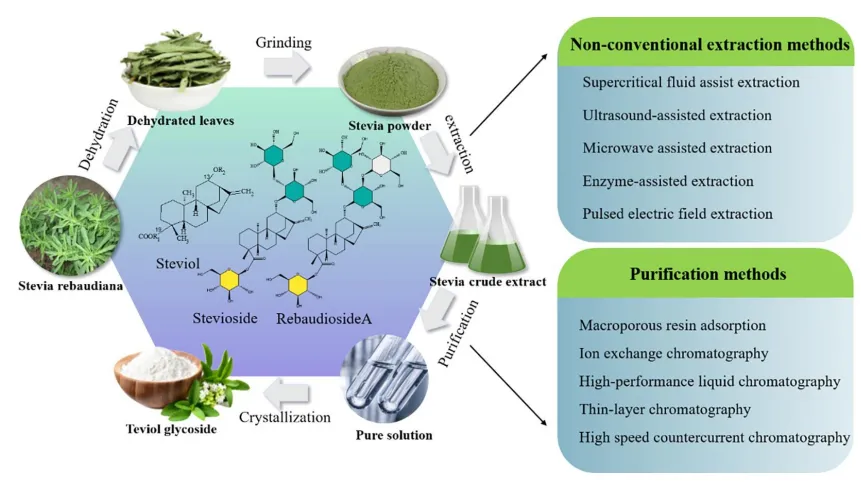 [1]Huang C X, Wang Y, Zhou C S, Fan X Y, Sun Q L, Han J Y, Hua C H, Li Y, Niu Y W, Okonkwo C E, Yao D Y, Song L L, Otu P. Properties, extraction and purification technologies of Stevia rebaudiana steviol glycosides: A review[J]. Food Chemistry, 2024, 453:139622.