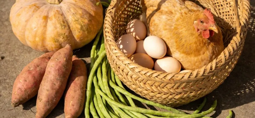 然后是零成本搞定饲料和肥料,这是种养里最大的持续开销,我几乎没花过钱。村里收完花生的花生壳、玉米芯,我拉回来磨成粉;菜地里农户不要的老菜叶、烂果子,果园里的落果,田埂上的杂草,我每天拉回来,和少量麸皮一起发酵,就是营养全面的鸡饲料。别人养一只土鸡,饲料成本要二三十块,我连5块都不到。而鸡粪加上我拉回来的果树废枝粉碎后堆肥,就是全年够用的有机肥,一分钱化肥都没买过。用这些肥种村里没人要的边角荒地,不用交租金,种点红薯、南瓜、豆角,耐造不用管,一部分喂鸡,一部分拿到市集卖,又是一笔稳赚的收入。