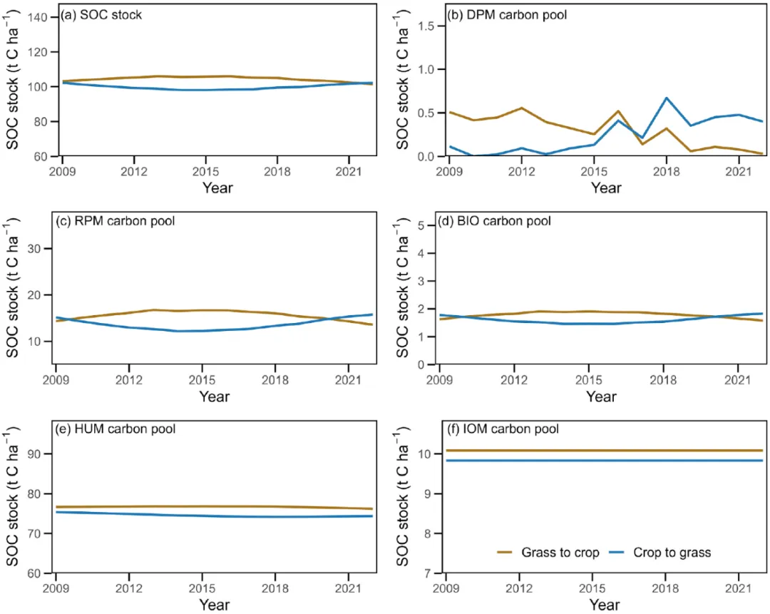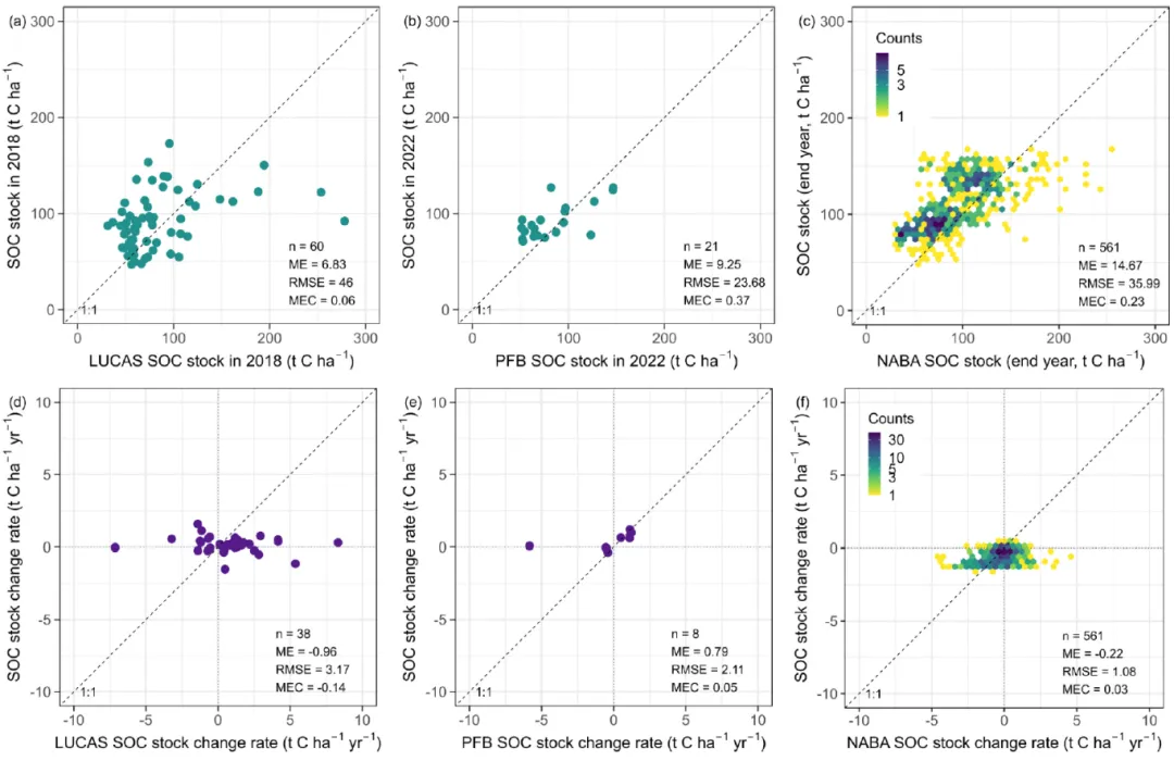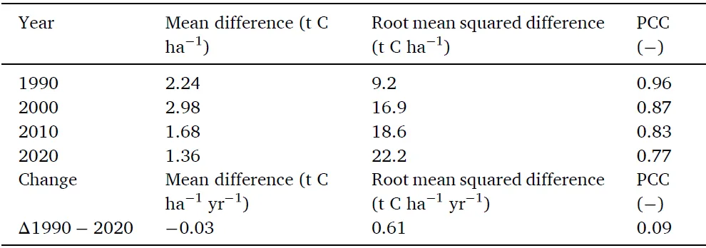 表3.RothC模拟的SOC存量和变化与来自Helfenstein等人的网格数据的比较。(2024a)(PCC=皮尔逊相关系数)。