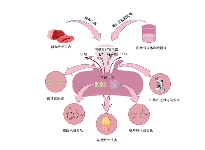 牛肉营养丰富,备受消费者青睐,其中热鲜牛肉已经占到我国牛肉消费的60%左右。沙雷氏菌是热鲜牛肉中的优势腐败菌,其产生的蛋白酶和脂肪酶会加速蛋白质水解与脂肪氧化,导致牛肉保质期缩短,肉色及风味劣变。传统用单一有机酸抑制沙雷氏菌,但需要较高浓度的有机酸,杀菌的同时影响了牛肉品质。