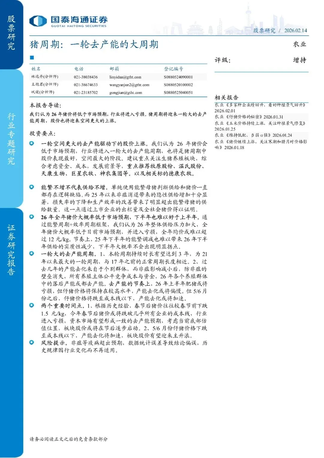 回复暗号:农业-猪周期:一轮去产能的大周期-260214-国泰海通证券-16页
