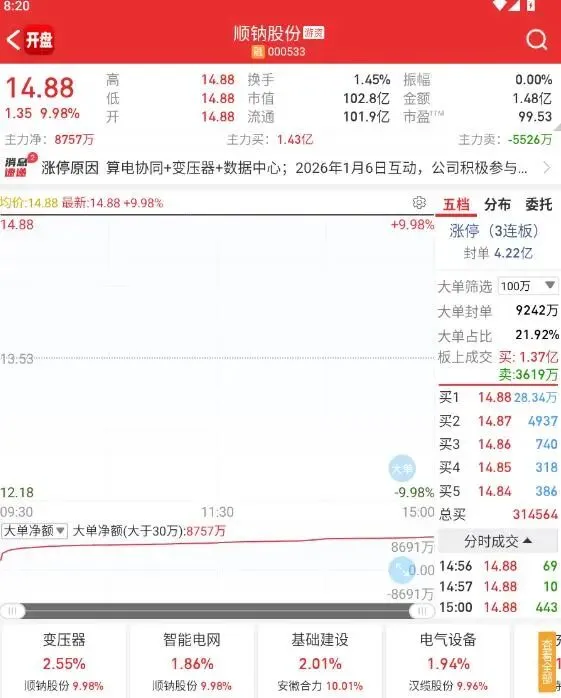 上次分析的顺钠股份继续涨停,盘中分享的低吸也有收获,恭喜伙伴们。如果希望了解操作细节,也欢迎一起来多交流。同时希望伙伴们多多关注、点赞与转发,支持作者继续创作,谢谢!