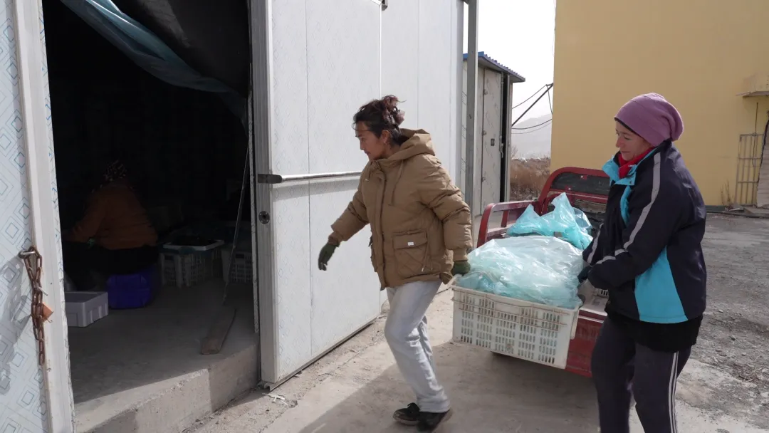 新疆鼎丰盛科技有限公司员工古丽巴尔·克力玛洪说:“我们在家门口大棚里面干活,每天分拣蔬菜进行装箱,活不重,能有稳定的收入。现在一边干活一边学习种植技术,心里特别高兴。”