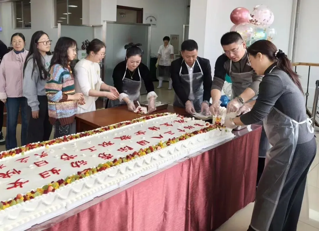 甜蜜分享,情暖巾帼。活动现场,兴之龙餐饮公司精心定制的节日蛋糕香气四溢,学院工会常务副主席齐光宇、总务处副处长何亚辉及工会、餐饮部工作人员一同为女职工分切蛋糕、送上祝福,将组织的关怀与节日的温馨凝于甜蜜之中。现场暖意融融、笑语盈盈,大家欢聚一堂,共享甜蜜,互致祝福、共话美好。