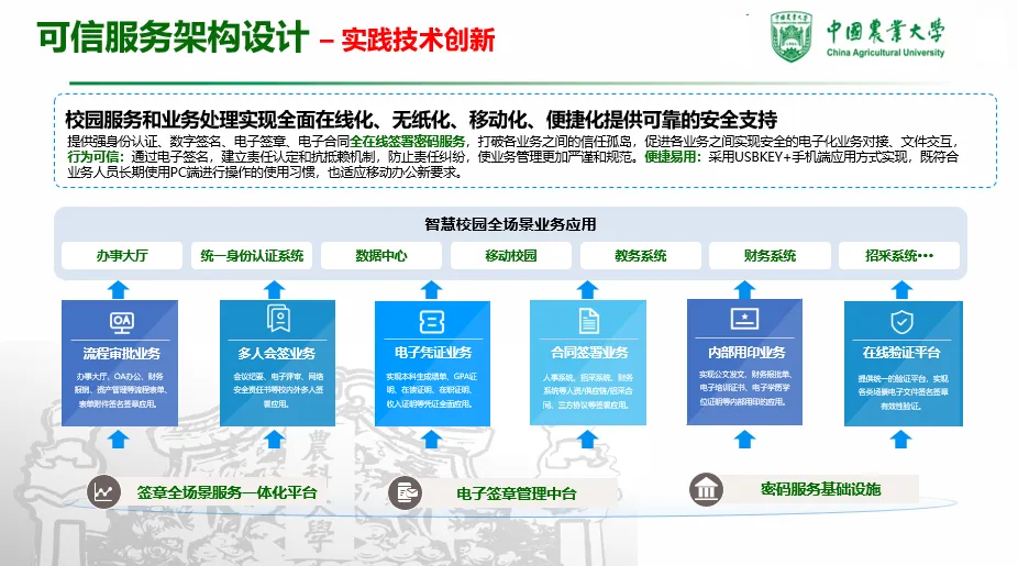《“高效办成一件事”应用供应链自主化改造探索》是我校响应国家信息技术应用创新战略的重要成果,围绕高校治理体系和治理能力现代化目标,用系统性思维攻克数据资源开发利用中的难题,重点打造校内、校地“高效办成一件事”场景,强化教育部与学校数据协同,拓展校地区域协作,通过我校“星云”混合云信息技术应用创新基座、“个人数据中心”数据流转驱动,整合办事资源、优化签批流程,提供自主可控、安全合规的电子签批与密码服务,解决网上办事“最后一公里”问题,最大程度的为师生减负,激发学校发展内生动力。