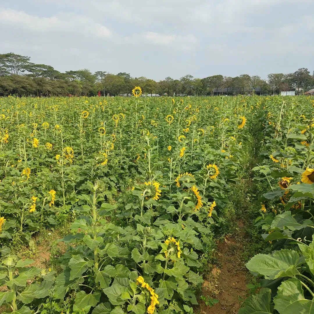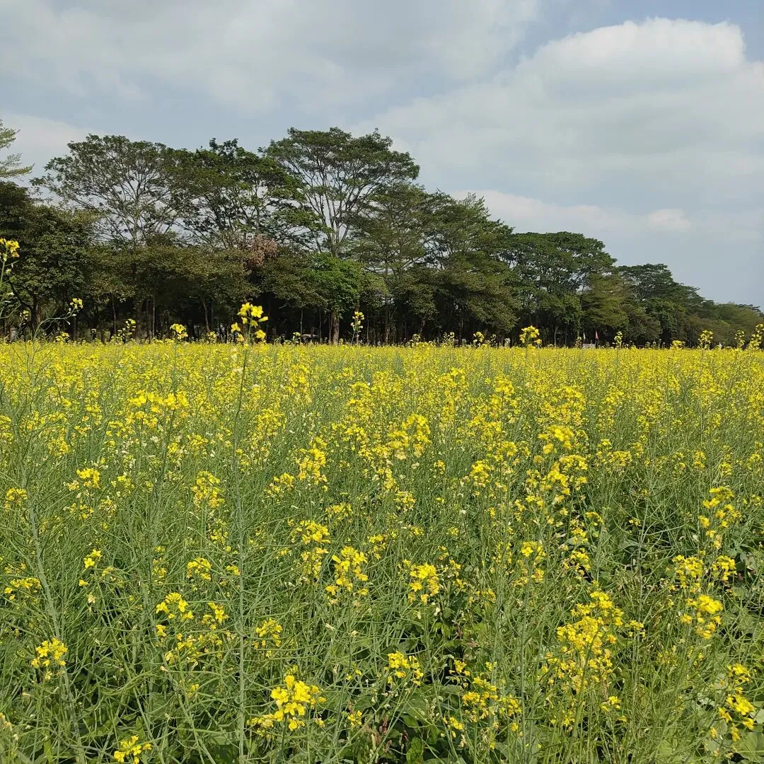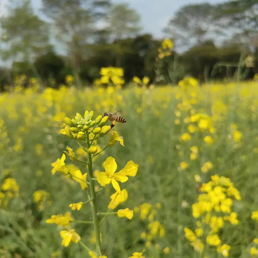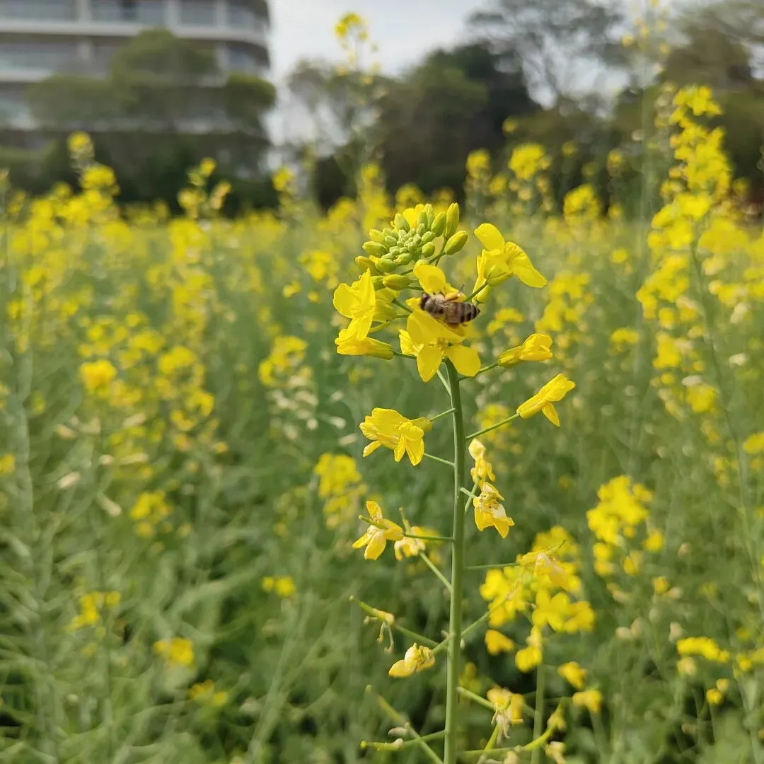 很多文人墨客,都给它留下了很多流传千古的诗句和文章。俗语说,一年之计在于春。春天,是计划的季节,是播种的季节。古代农耕社会,春天是最重要的,这个季节,很少发动战争,原因是打仗会误农时,导致一年没收入。当然,现代不一样了,经济和贸易的发展,使得发动战争,没有那么多的限制了,比如现在的美帝。嗯,话题扯远了,今天,我们就去东莞东坑农业园,看看油菜花的花海吧。说到油菜花,我们两广人很熟悉,在农村,都种有,嫩嫩的菜心,炒起来很好吃。不过,现在这里的菜心,已经不能吃了,一个是太老了,一个是有农药,只是一个景观了。但这也不影响游客们的兴致,在这里,有不少游客在拍照,一片金黄色的花海,确实值得留恋。蜜蜂,喜欢在花的海洋中飞舞,它们不停地采着花粉,然后回去酿成蜂蜜。我们就像蜜蜂一样,每天都勤快地工作着,希望,我们的生活,也能像蜂蜜一样,甜美!走近这片油菜花海,我们可以闻到一股浓浓的花香,这股花香,能洗涤我们工作的疲惫。这股花香,这片金黄,能让我们感受到大自然之美,感受到春天的灿烂。油菜花海的旁边,是一片向日葵。这里的向日葵,没有葵香园那么多,只是,作为一个点缀吧。虽然没有葵香园的震撼,但假如你没到过葵香园,这里的向日葵花,也能让你心花怒放。这就是向日葵花的魅力,它以光辉灿烂的形象,以沉默忠诚的爱意,影响着我们的情绪。看到它们,我们就不由自主地想到,我们那个忠贞的爱人,我们那个忠诚的伴侣。今天刚好是三八妇女节,就让我们祝愿所有的那个她,节日快乐,身体健康,万事如意!农业园里的滩美湖,湖边的千层金,枝头上,已经长出了金黄色的嫩叶,与底下的绿叶,形成鲜明的对比。