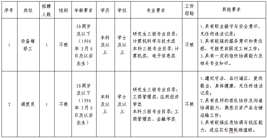 本次招聘涉及2个Ⅱ类岗位,共计划招聘工作人员2名。具体招聘岗位、人数和要求如下: