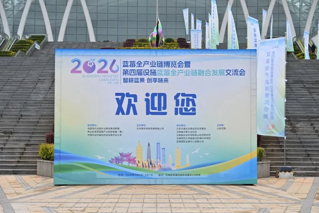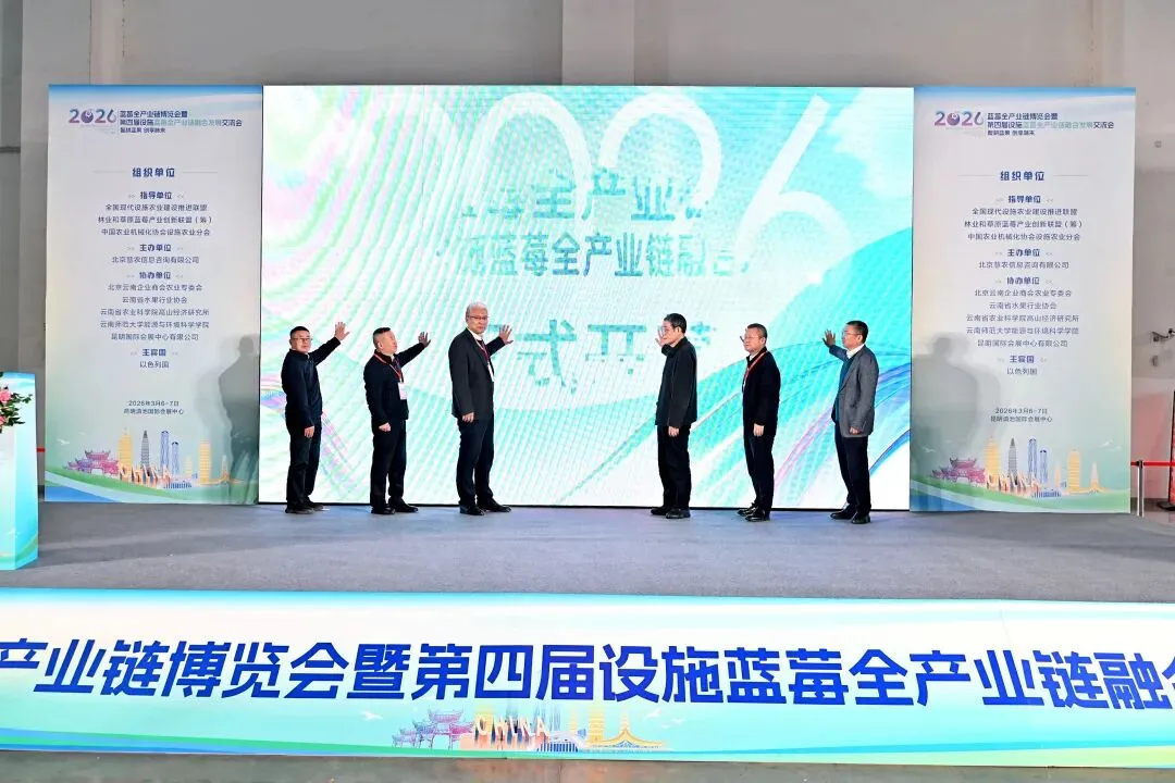 春潮涌动滇池岸,蓝果飘香聚宾朋——3月6日,2026蓝莓全产业链博览会暨第四届设施蓝莓全产业链融合发展交流会在昆明滇池国际会展中心隆重开幕。本次盛会汇聚海内外200余家顶尖企业,搭建起一个涵盖种苗研发、设施种植、深加工、冷链物流、品牌运营的全产业链交流合作平台,旨在为中国蓝莓产业从“规模扩张”向“品质崛起”注入强劲动能。本次博览会由北京慧农信咨询有限公司主办,并得到了全国现代设施农业建设推进联盟、林业和草原蓝莓产业创新联盟(筹)、中国农业机械化协会设施农业分会等单位的指导,以及北京云南企业商会农业专委会、云南省水果行业协会等多家机构的协办支持,共同确保了盛会的专业性与影响力。北京云南企业商会执行会长兼农业专委会主任、百集龙集团董事长李大剑出席盛会并致辞。中国已稳固全球最大蓝莓生产国地位。数据显示,2025年全国种植面积达158万亩,总产量81万吨,市场规模突破500亿元。然而,面对全年超100万吨的市场需求,目前仍存在约19万吨的供给缺口,显示产业发展潜力依然广阔。