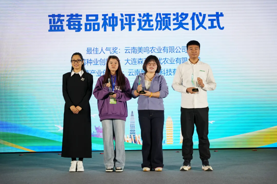 为表彰行业先进,开幕式上特设蓝莓品种评选颁奖环节。最终,云南美鸣农业有限公司荣获“最佳人气奖”,大连森茂现代农业有限公司摘得“蓝莓种业创新奖”,云南莓佳加科技有限公司获得“种苗产业创新奖”,北京慧农信息咨询有限公司总经理王明媚为获奖单位颁奖。这不仅是对美味的肯定,更是对产业智慧与辛勤付出的致敬。