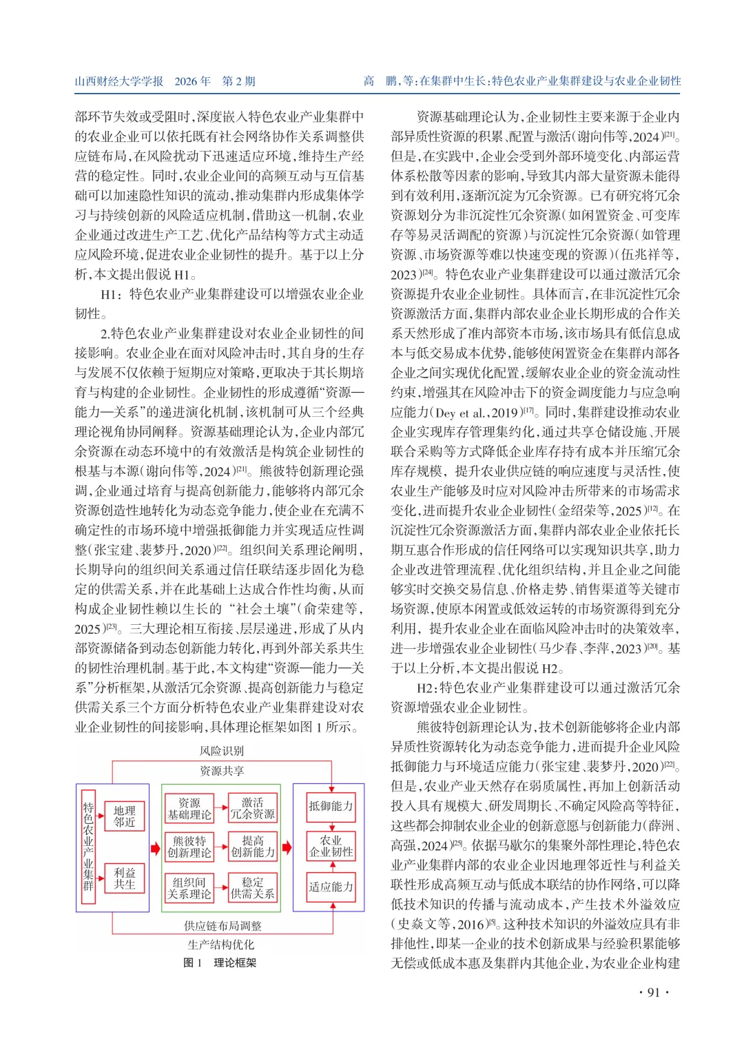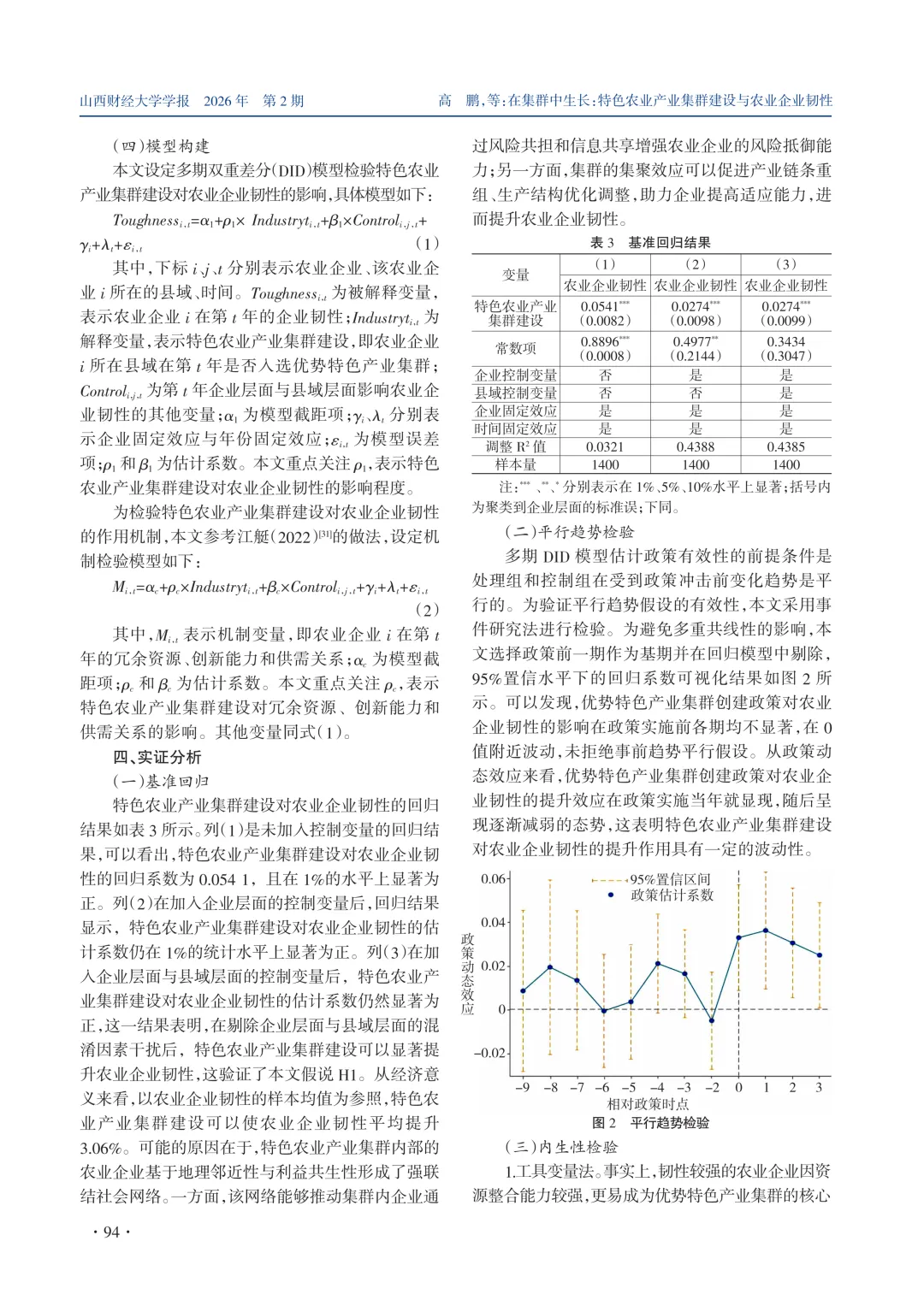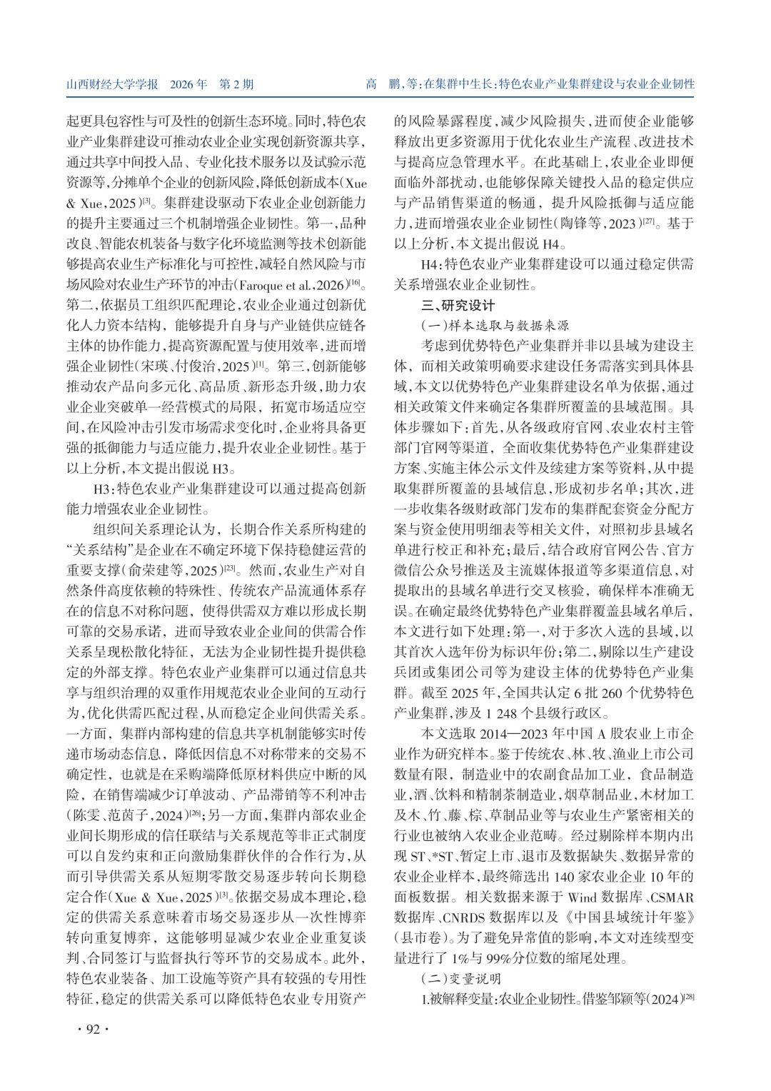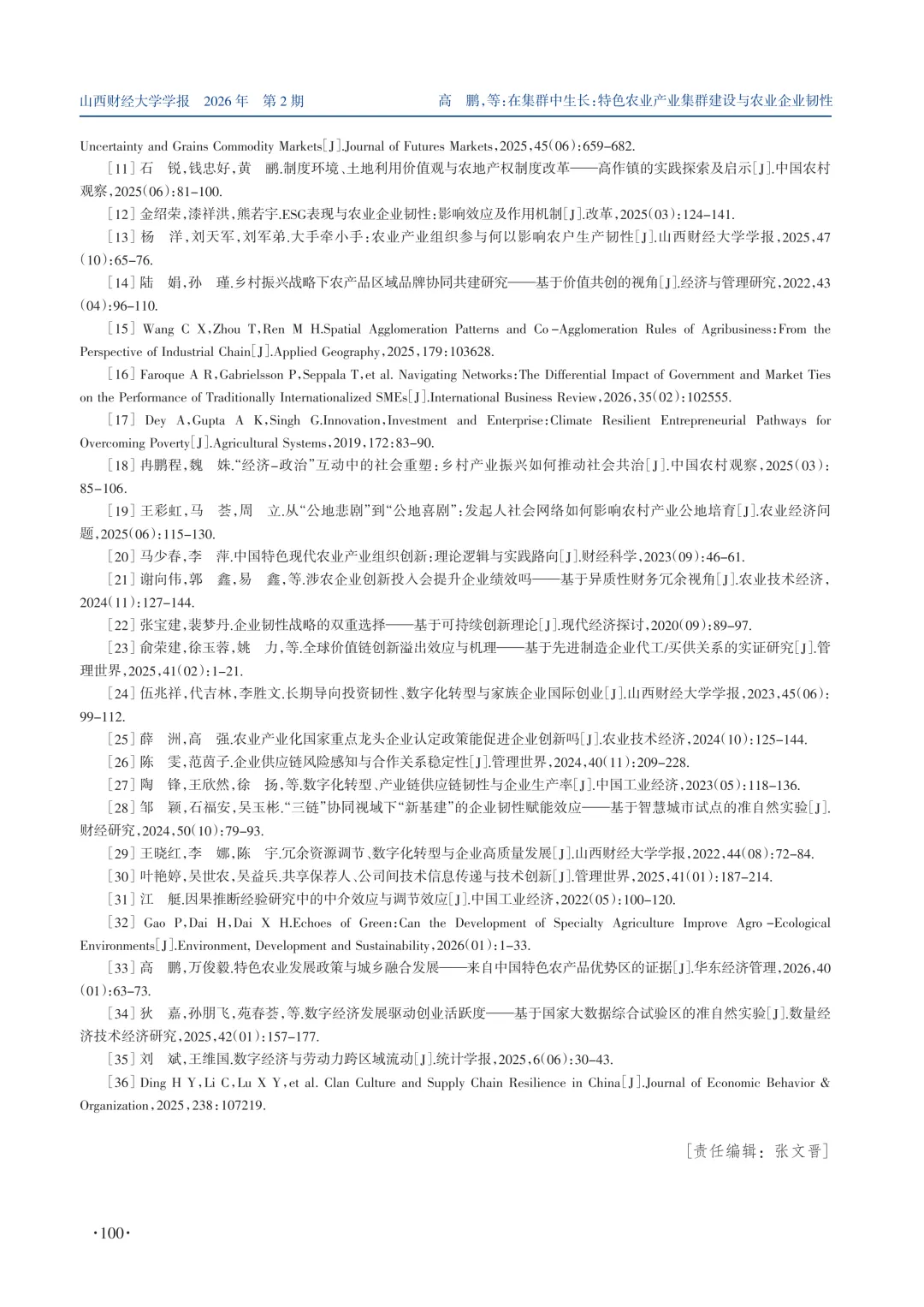 引用格式:高鹏,万俊毅.在集群中生长:特色农业产业集群建设与农业企业韧性[J].山西财经大学学报,2026,48(02):88-100.