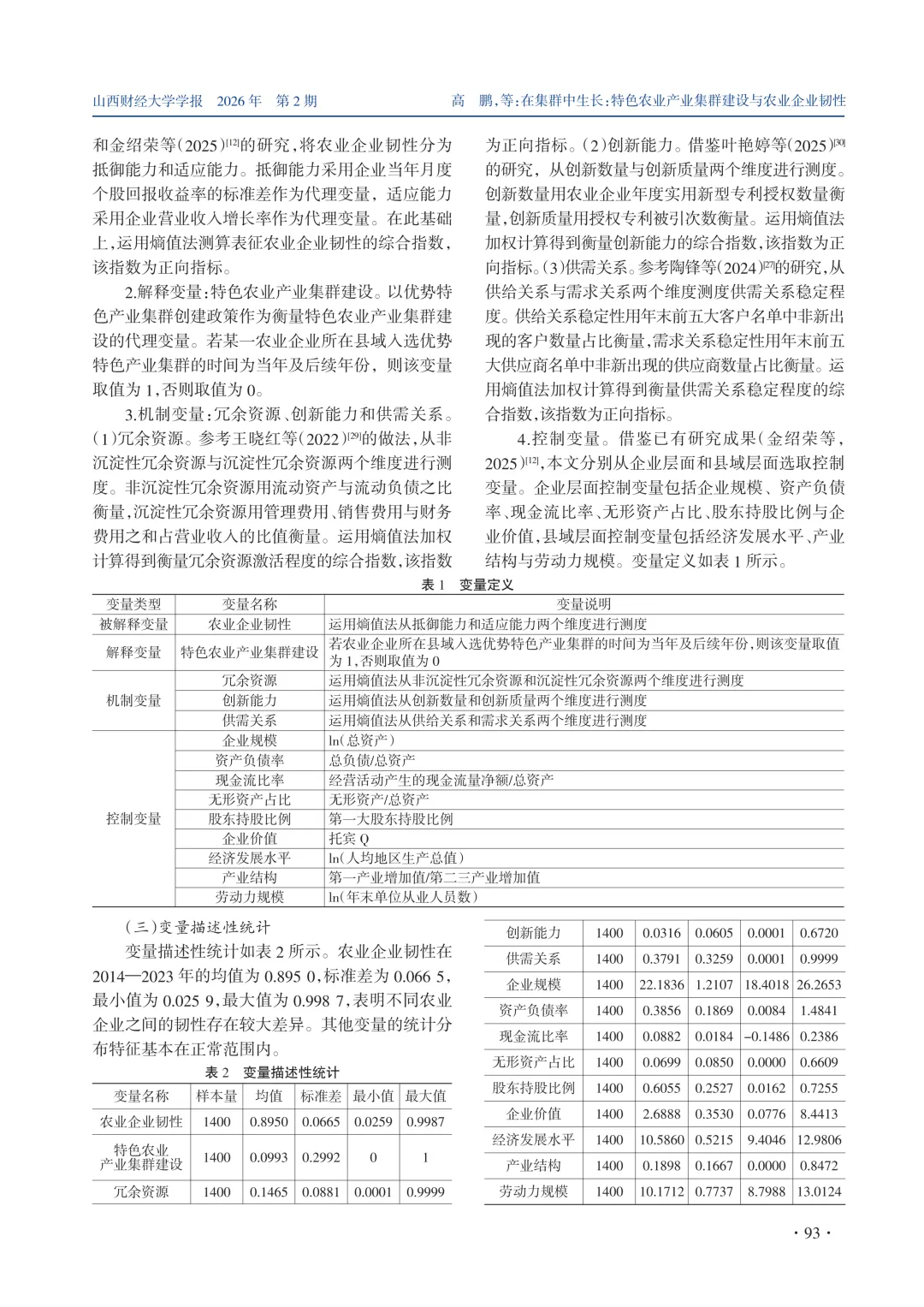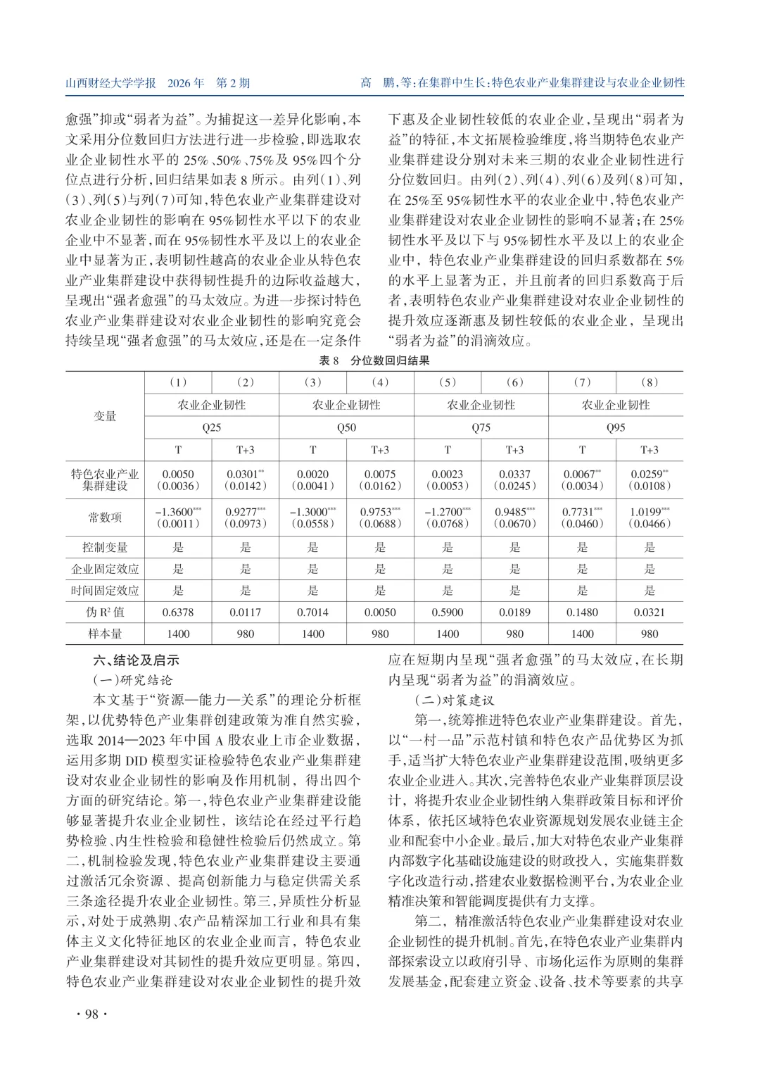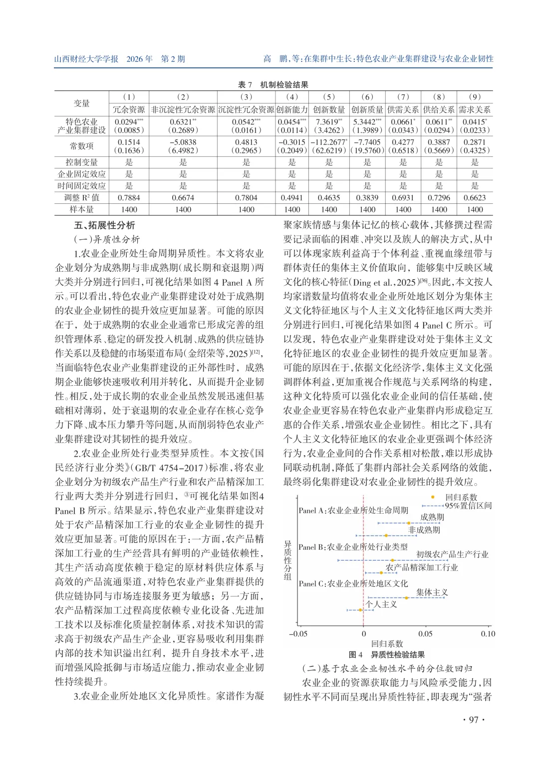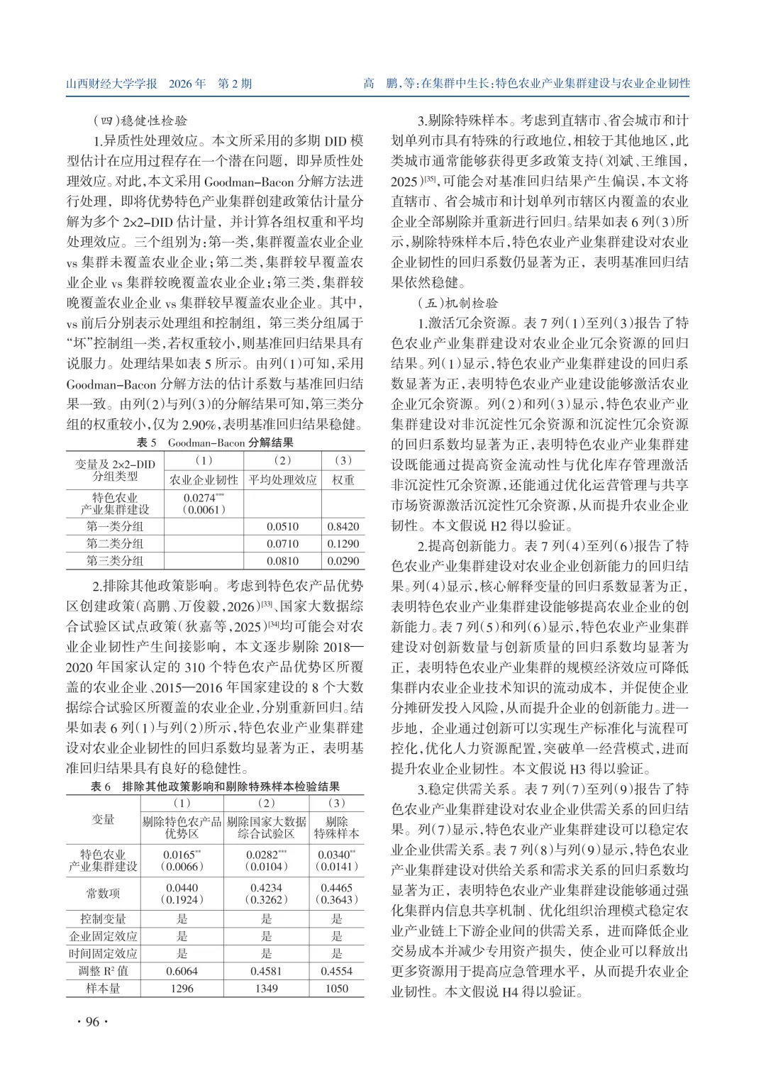 引用格式:高鹏,万俊毅.在集群中生长:特色农业产业集群建设与农业企业韧性[J].山西财经大学学报,2026,48(02):88-100.