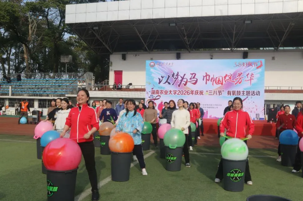 在第116个“三八”国际劳动妇女节到来之际,湖南农业大学生物科学技术学院组织教职工踊跃参与学校工会举办的“以梦为马巾帼绽芳华”超级有氧鼓趣味主题活动。全院参赛教职工齐聚东田径场,在铿锵鼓点与欢声笑语中舒展身心、携手协作,尽展新时代生科学院巾帼风采与团队活力。