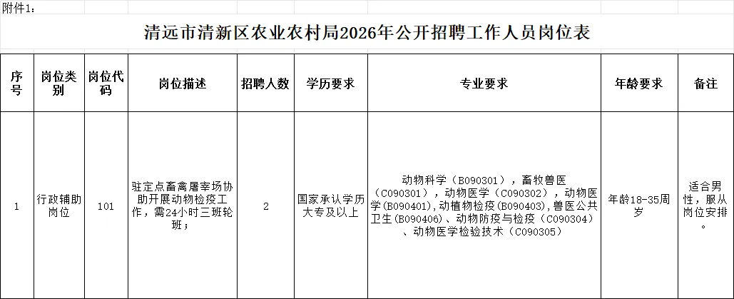 3.具有拟聘岗位所需资格条件的人员;岗位所需资格条件详见《清远市清新区农业农村局2026年公开招聘工作人员岗位表》(附件1);