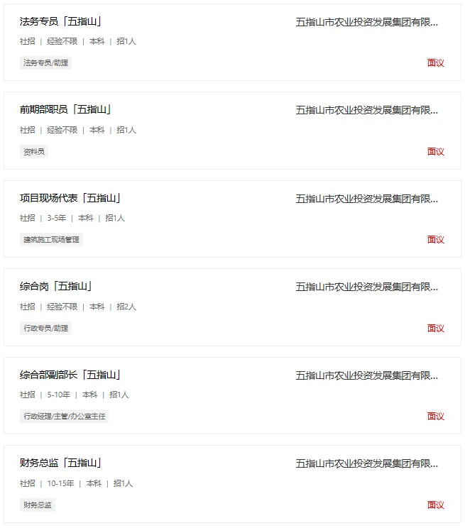 五指山市农业投资发展集团有限公司招聘工作人员