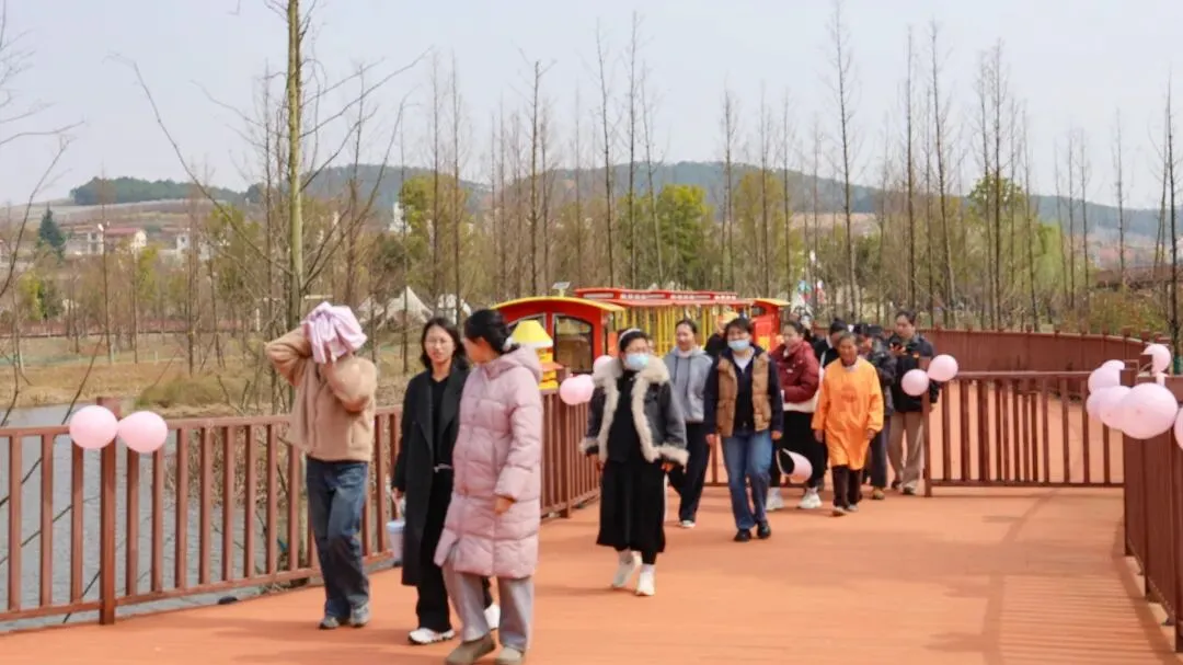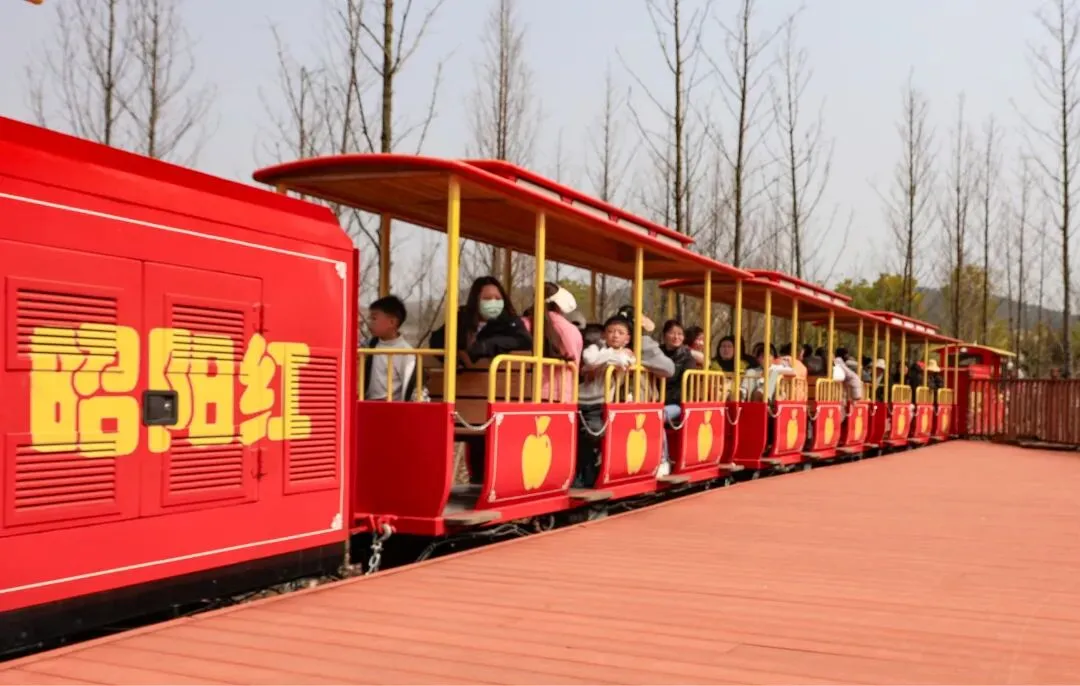 活动伊始,一列满载女神们的观光小火车缓缓启动,沿着景区轨道穿梭在迷人的果园与花海中。以前大家对公司的认知更多是好吃的昭阳红苹果,如今景区秀美的景色成为大家手机记录的焦点:3.2公里的环湖车道绿植萌发,2.4公里的环湖步道旁百花绽放,加上复古观光小火车的精巧点缀,构成一幅流动的田园画卷。在小火车“哐当”声与姐妹们的欢笑声里,平日辛勤工作的疲惫烟消云散。