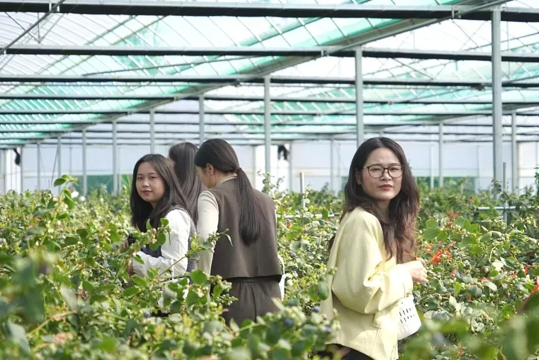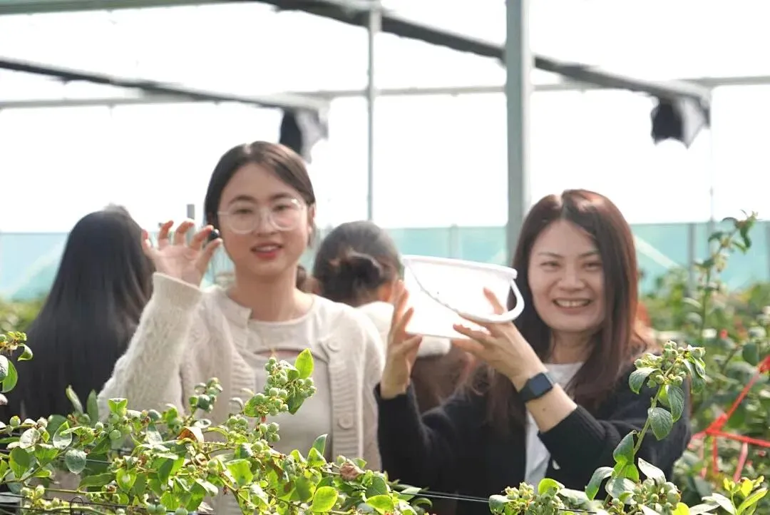第一站来到艺蓉蓝莓庄园,一串串饱满多汁的蓝莓挂满枝头,大家提着果篮穿梭其间,亲手采摘新鲜果实,在田园风光里感受收获的快乐,酸甜滋味里满是轻松与惬意。