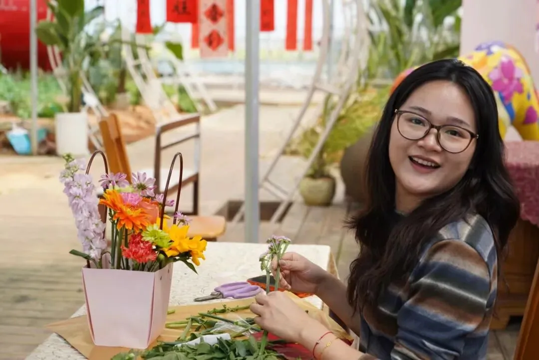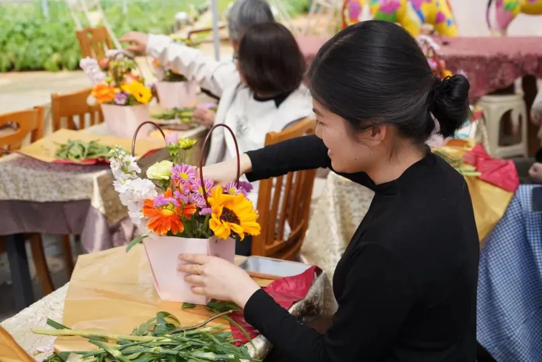 在玫瑰农庄,大家化身花艺师,以花为媒、以手传情,精心搭配、创意修剪。