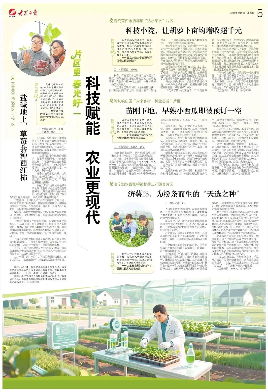 目前,丁庄片区已建成5个科技小院,形成“国家盐碱地综合利用技术创新中心+乡村振兴产业研究院+科技小院”三级科技服务体系。