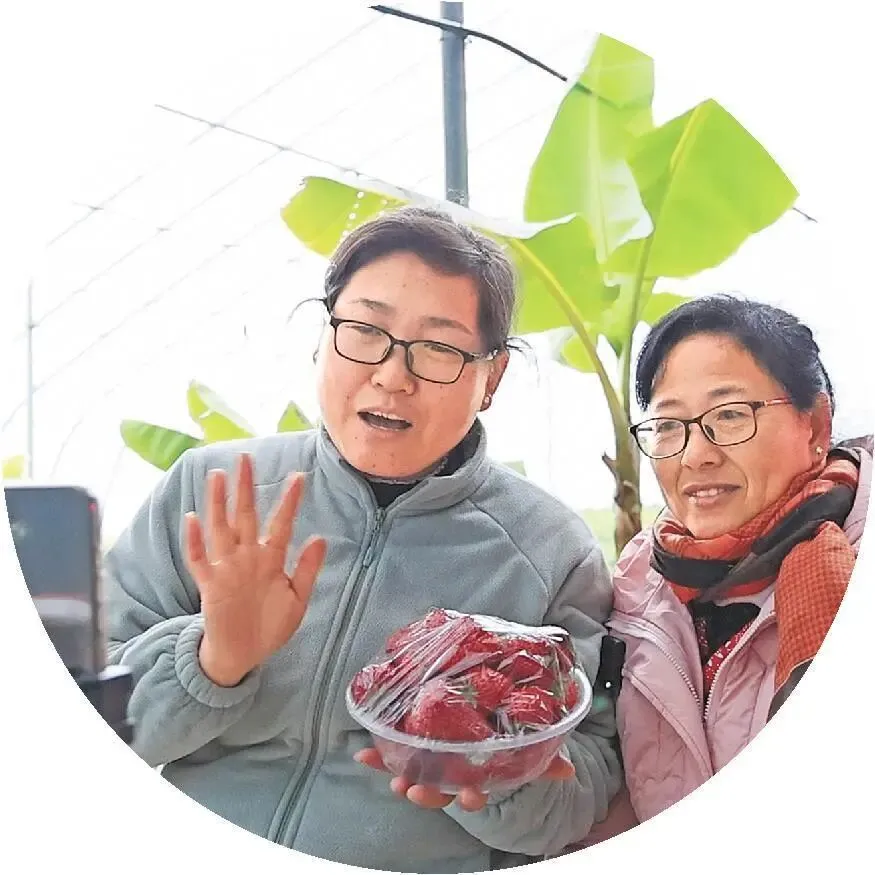 3月6日,东营市黄三角农高区丁庄乡村振兴齐鲁样板省级示范区王署埠村的草莓大棚,农民正在直播卖草莓。(记者 李明 孙娜娜 报道)